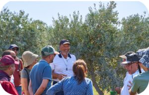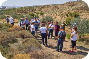 As the walkabout took place in the early afternoon with the temperature hovering around 30 degrees, Antonios had another surprise up this sleeve. He invited us to touch the ground and to everyone’s astonishment, the ground was still feeling moist! He assured us that with olive harvesting just round the corner, the trees were not being irrigated. The real reason had to be ascribed to different types of grass, purposely introduced to maintain the soil moisture level as high as possible.