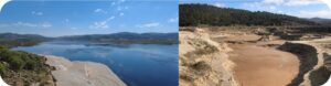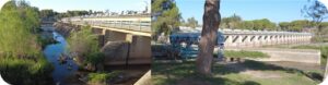 At the Gördes dam, we witness the very shallow depth of the water stored behind the dam, while its downstream part had silted up and formed large sand banks.